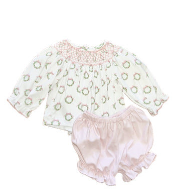 Pink Holiday Wreath Bishop Bloomer Set by Petit Bebe