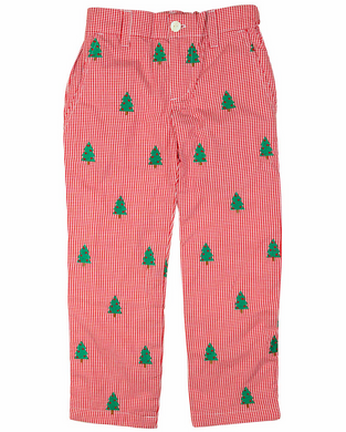 Blue Check Christmas Tree Boy's Pant Set by Petit Bebe