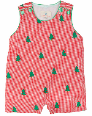 Blue Check Christmas Tree Boy's Bubble by Petit Bebe