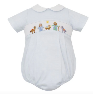 Lt. Blue Knit Stripe Nativity Bubble by Petit Bebe