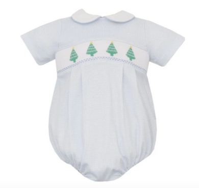 Blue Check Christmas Tree Bishop Bloomer Set by Petit Bebe