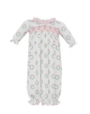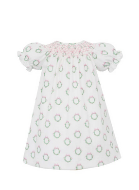 Pink Holiday Wreath Bishop by Petit Bebe