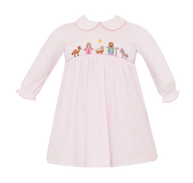 Pink Stripe Nativity Bishop Bloomer set w/Collar by Petit Bebe