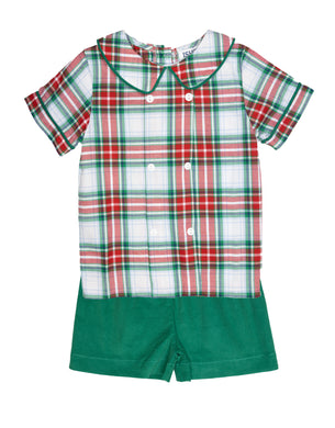 Red/Green Plaid Shorts Set by Ishtex