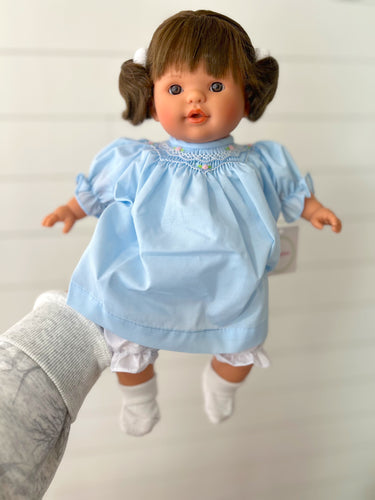 Rosalina 15" Brunette Doll with Blue Smocked Dress