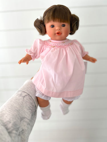 Rosalina 15" Brunette Doll with Pink Smocked Dress