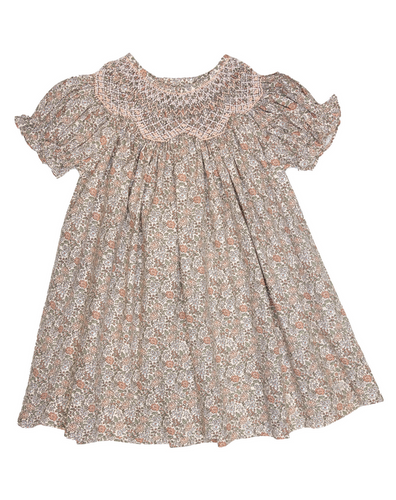 Sabrina Peachy Pink Floral Print Smocked Dress by Sweet Dreams