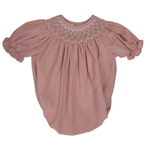 Sabrina Peachy Pink Floral Print Smocked Bubble by Sweet Dreams