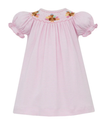 Girls Turkey Pink Knit Stripe Bishop by Petit Bebe
