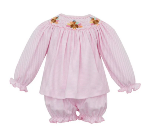 Girls Turkey Pink Knit Stripe Bishop Bloomer Set by Petit Bebe